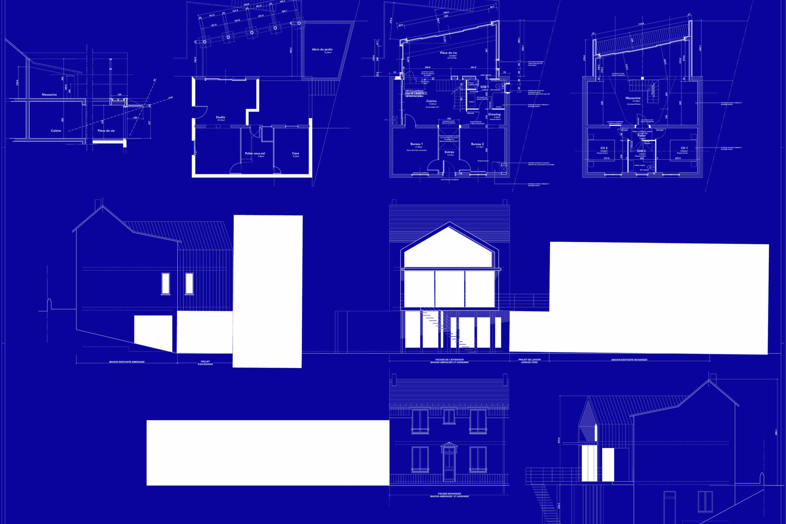La demande du Maître d'ouvrage, rénover, agrandir et lier cette maison et extension avec la maison voisine du même propriétaire.