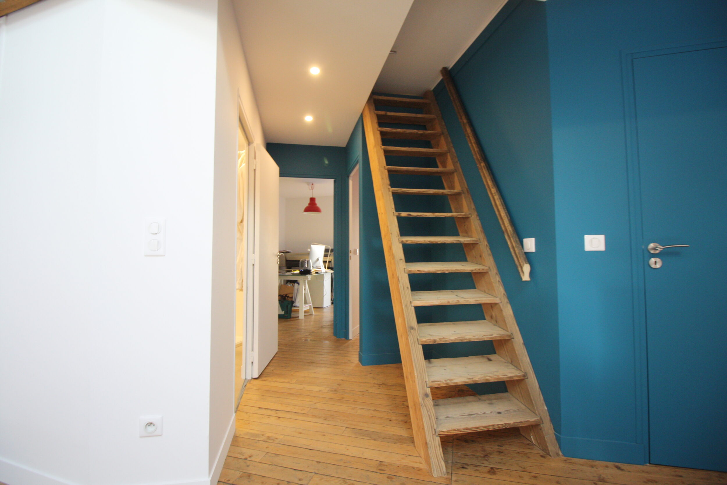 4 - Réemploi du vieil escalier et main courante pour accès aux combles (réaliser plus tard, grenier aujourd'hui)