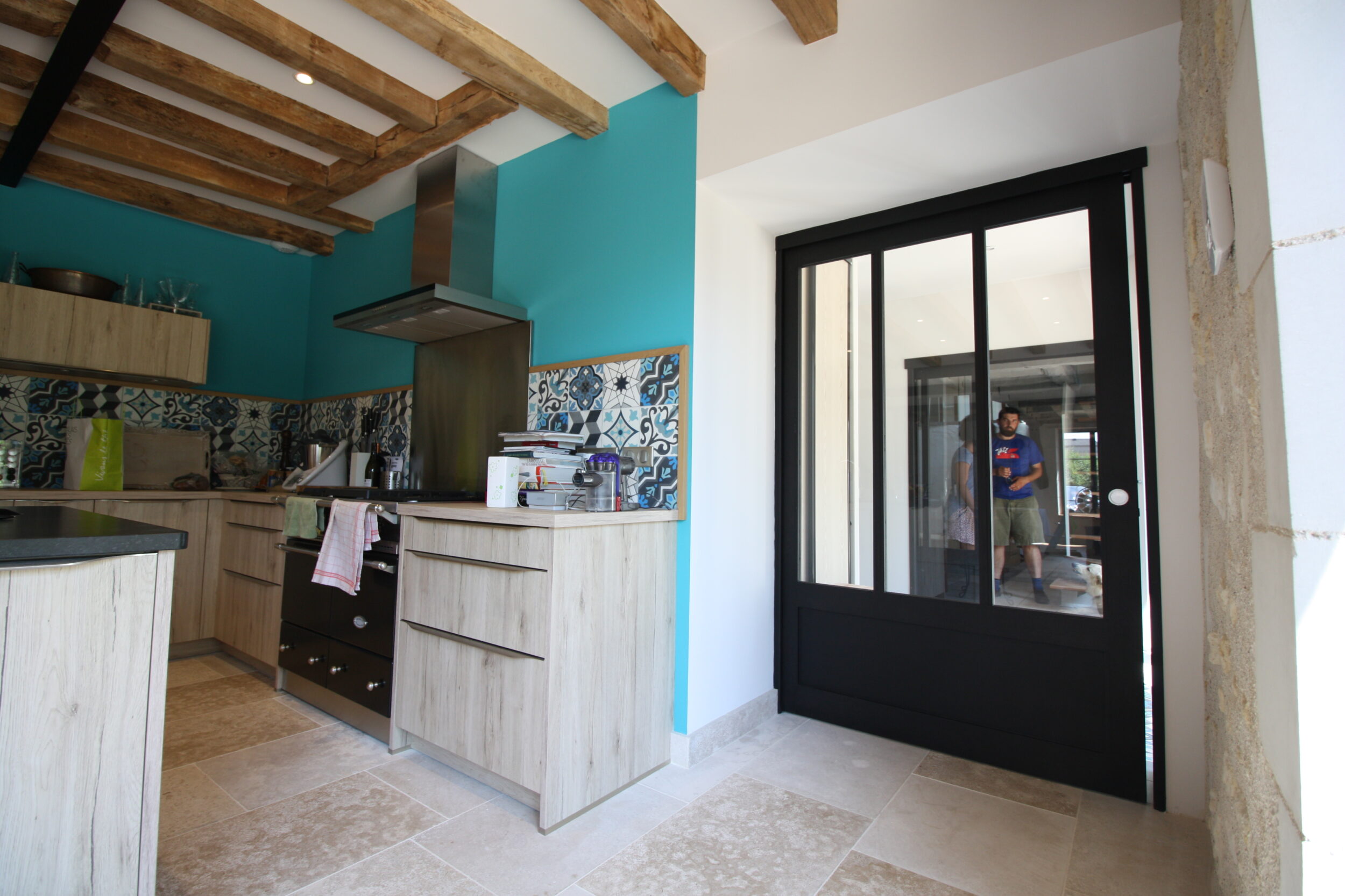 La Cuisine, une réalisation CUISINE AVENUE ( Tours ). Petit plus, le rappel des carreaux ciment en crédence de plan de travail.